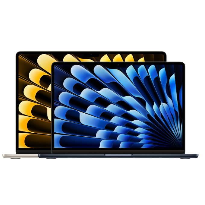 https://www.apple.com/v/macbook-air-13-and-15-m2/a/images/overview/design/design-hero_endframe__olurqzgtbh6e_large.jpg” alt=”Front view of partially open 13-inch and 15-inch MacBook Air models in Silver and Starlight colors showcasing differences in display size.” width=”auto” />